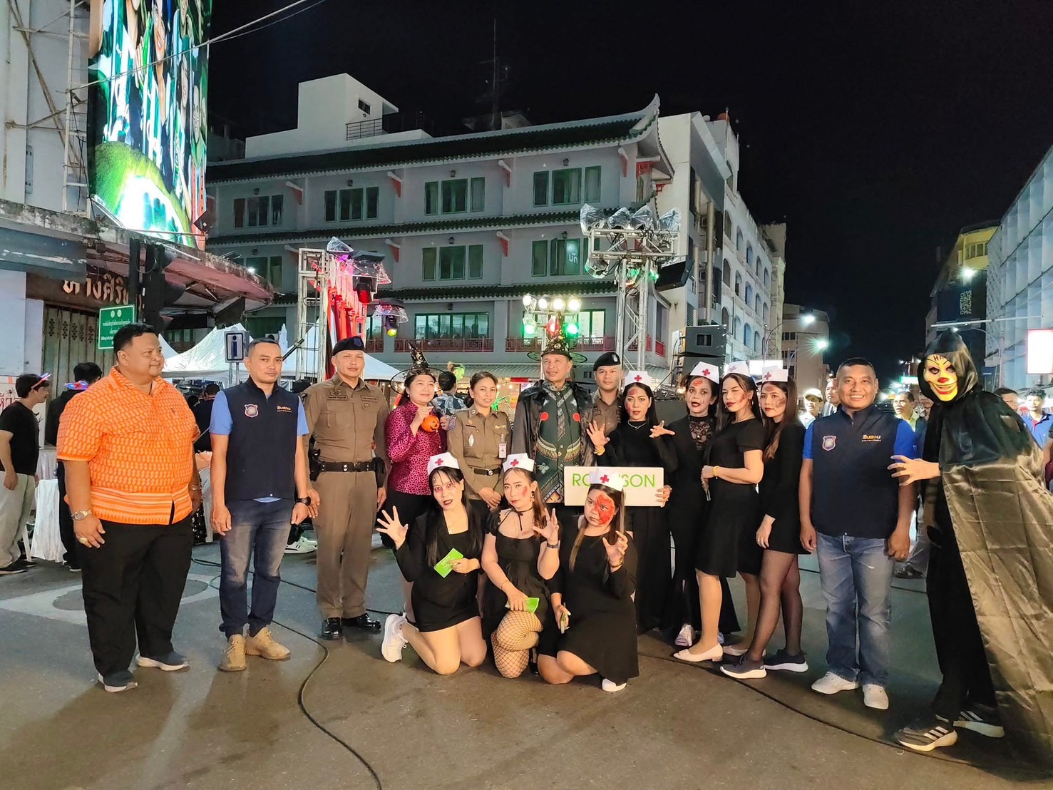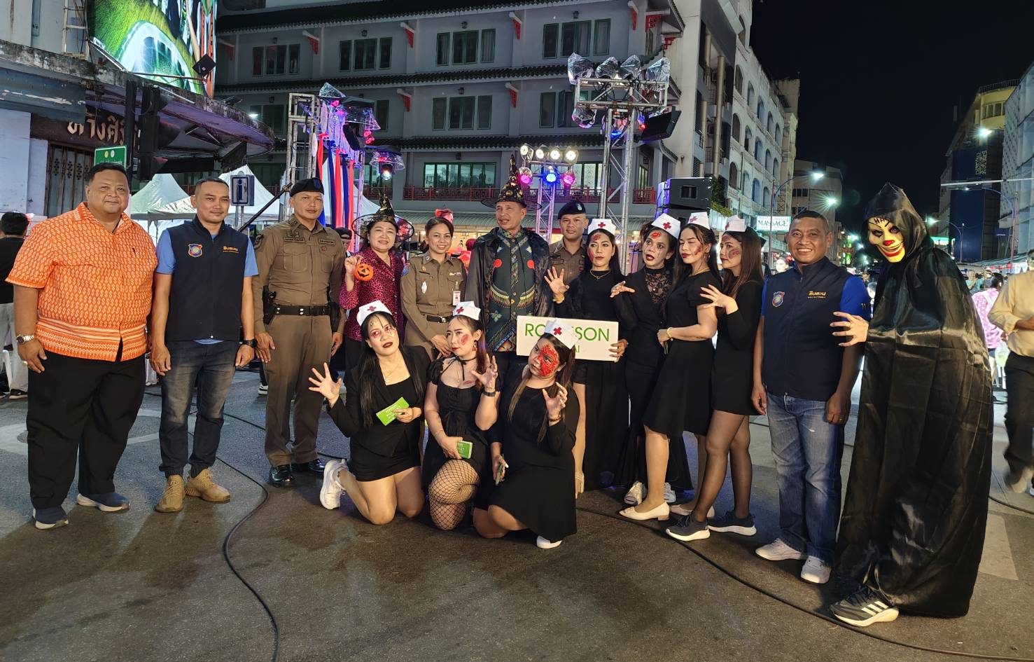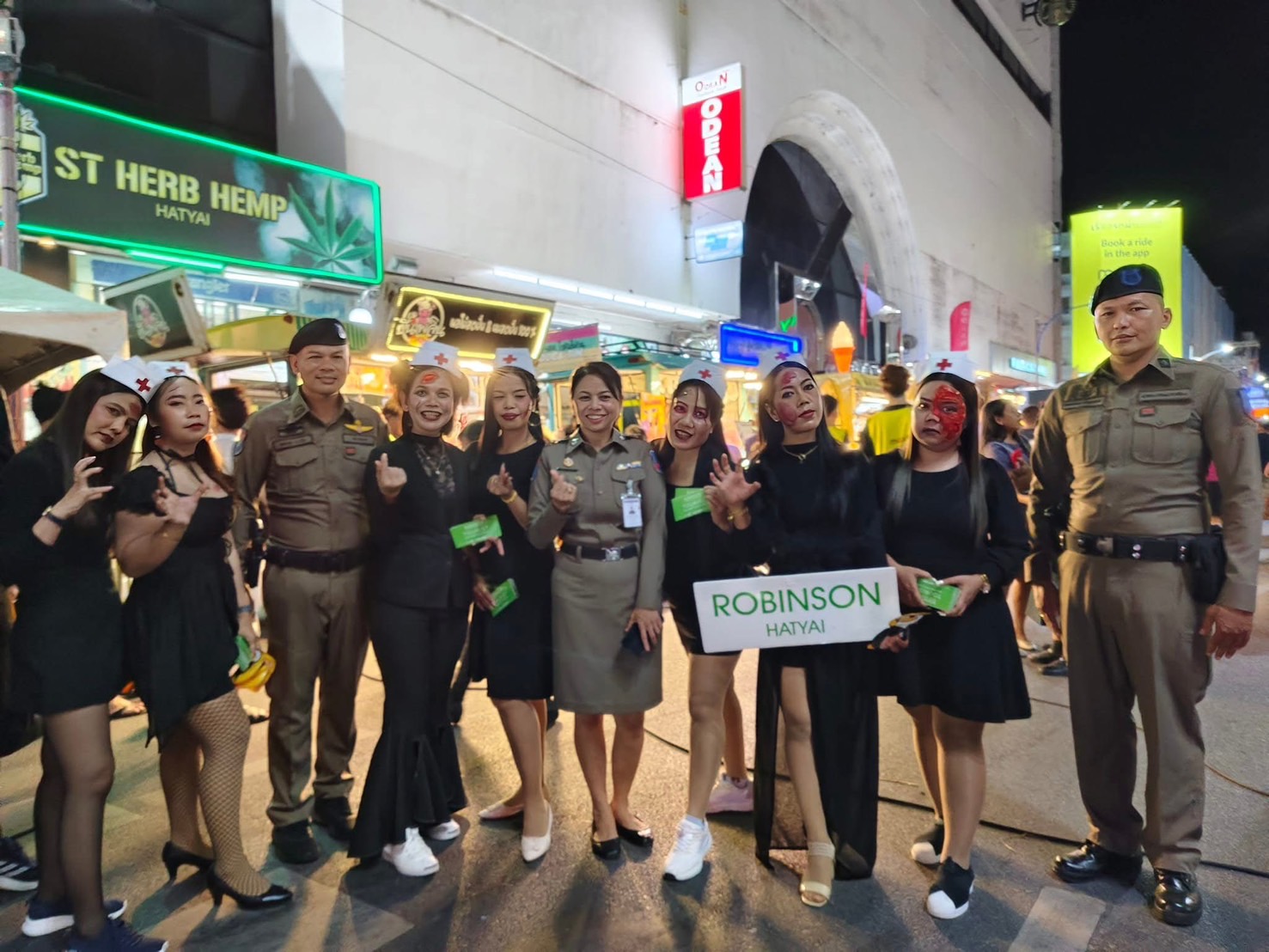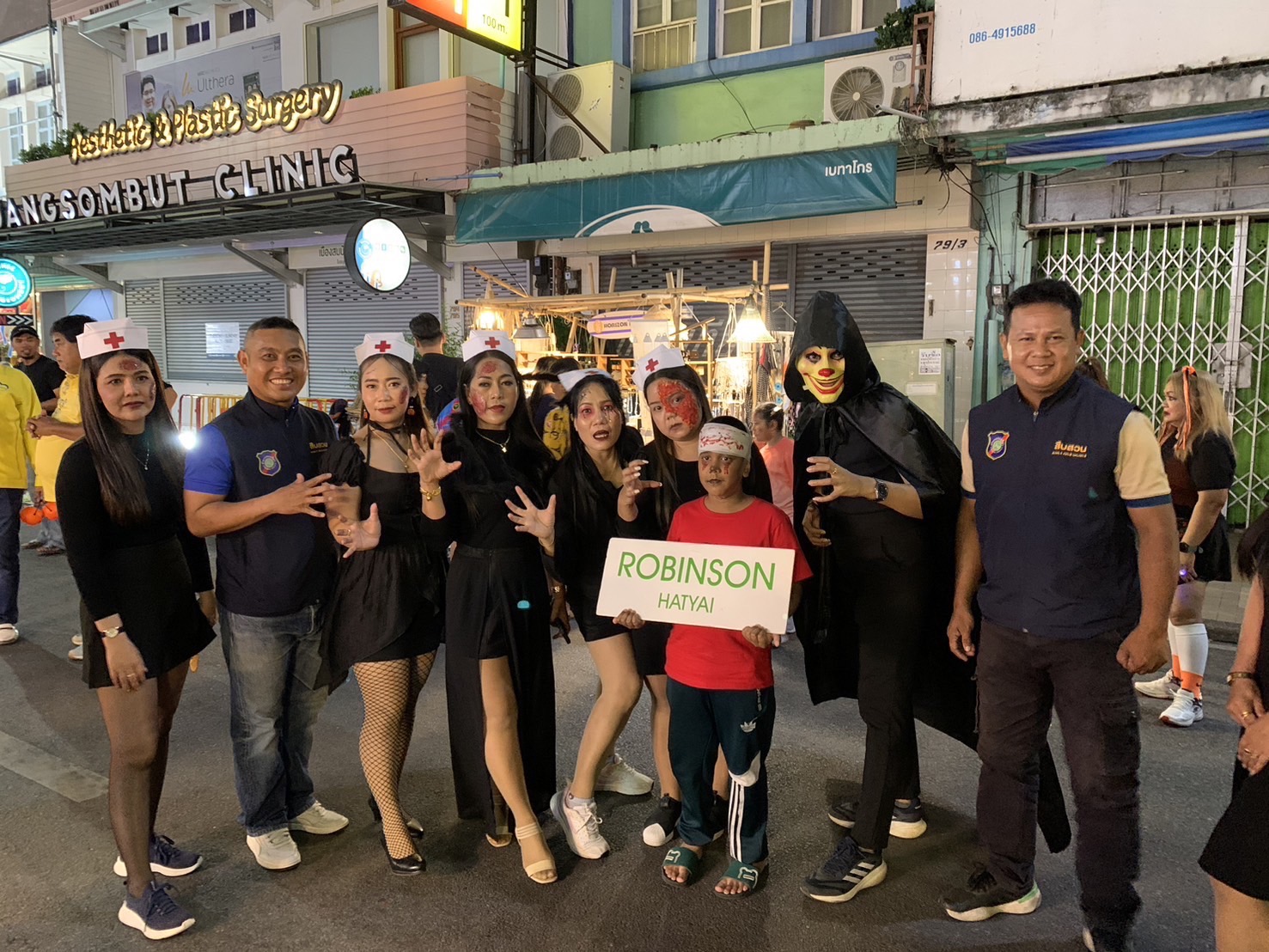 ร.ต.อ.ธีระ ประกอบบุญ รอง สว.ส.ทท.1 กก.3 บก.ทท.3 / ร้อยเวรประจำวัน พร้อมด้วยสายตรวจชุดปฏิบัติการ 3 ร่วมเจ้าหน้าที่เทศบาลนครหาดใหญ่ ว.4 ว.10 เดินเท้าตรวจตราพื้นที่รับผิดชอบ ดูแลความปลอดภัย นทท. บริเวณ งานเทศกาลฮาโลวีน “สถานีขนหัวลุก” ณ บริเวณสี่แยกถนนนิพัทธ์อุทิศ 3 โดยมี พล.ต.ท.สาคร ทองมุณี นายกเทศมนตรีเทศบาลนครหาดใหญ่ เป็นประธานเปิดงาน