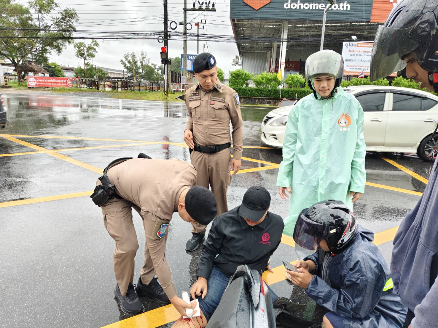 ร.ต.อ.ธีระ ประกอบบุญ รอง สว.ส.ทท.1 กก.3 บก.ทท.3 / ร้อยเวรประจำวัน พร้อมด้วยสายตรวจชุดปฏิบัติการ 3 ว.4 ช่วยเหลือผู้บาดเจ็บ เหตุ ว.40 บริเวณสี่แยกทางเข้า สภ.คอหงส์ อ.หาดใหญ่ จ.สงขลา สายตรวจ ชป.3 ประสาน ร้อยเวรฯ และรถพยาบาลนำผู้ประสบอุบัติเหตุส่ง รพ.ต่อไป