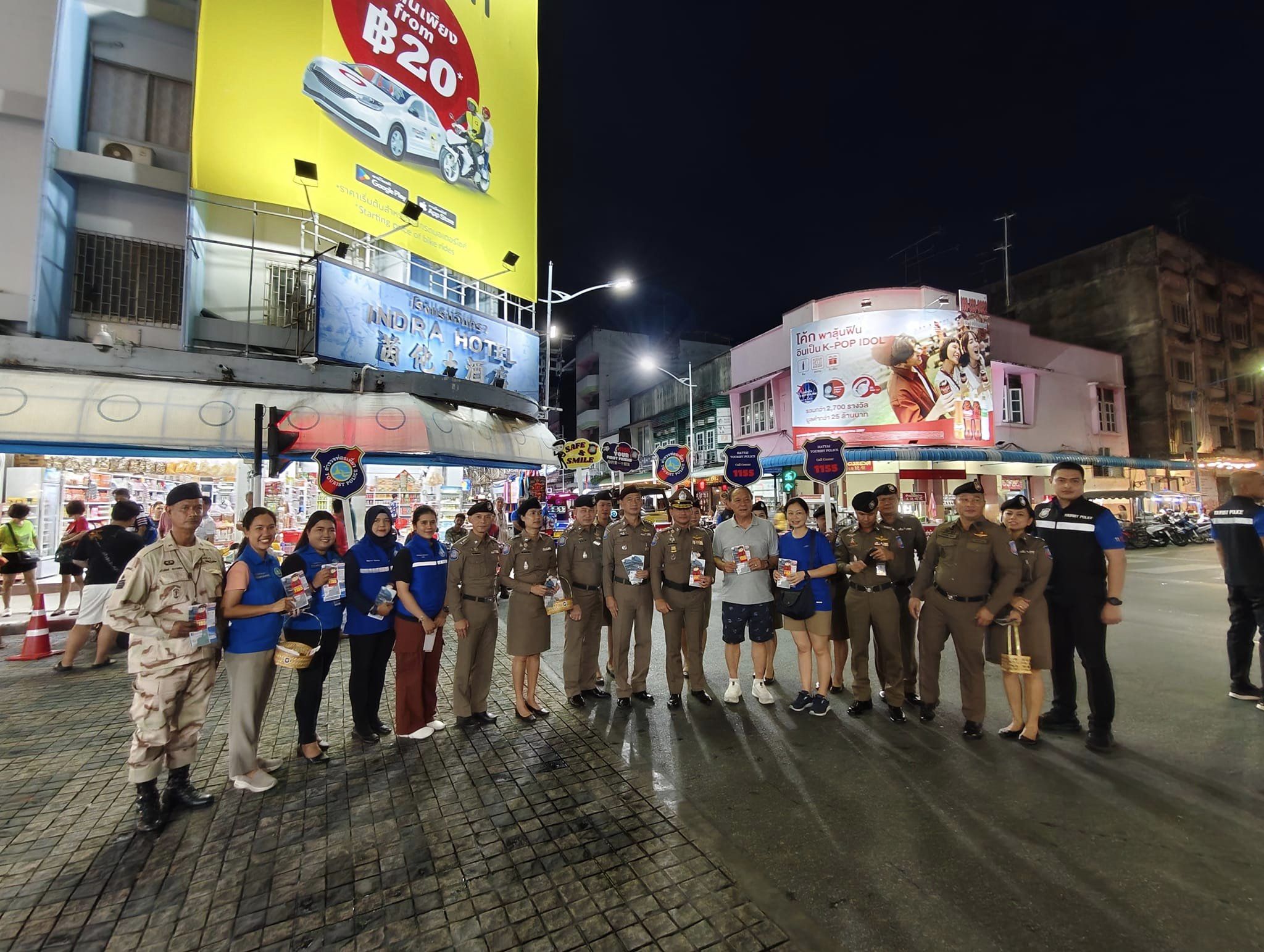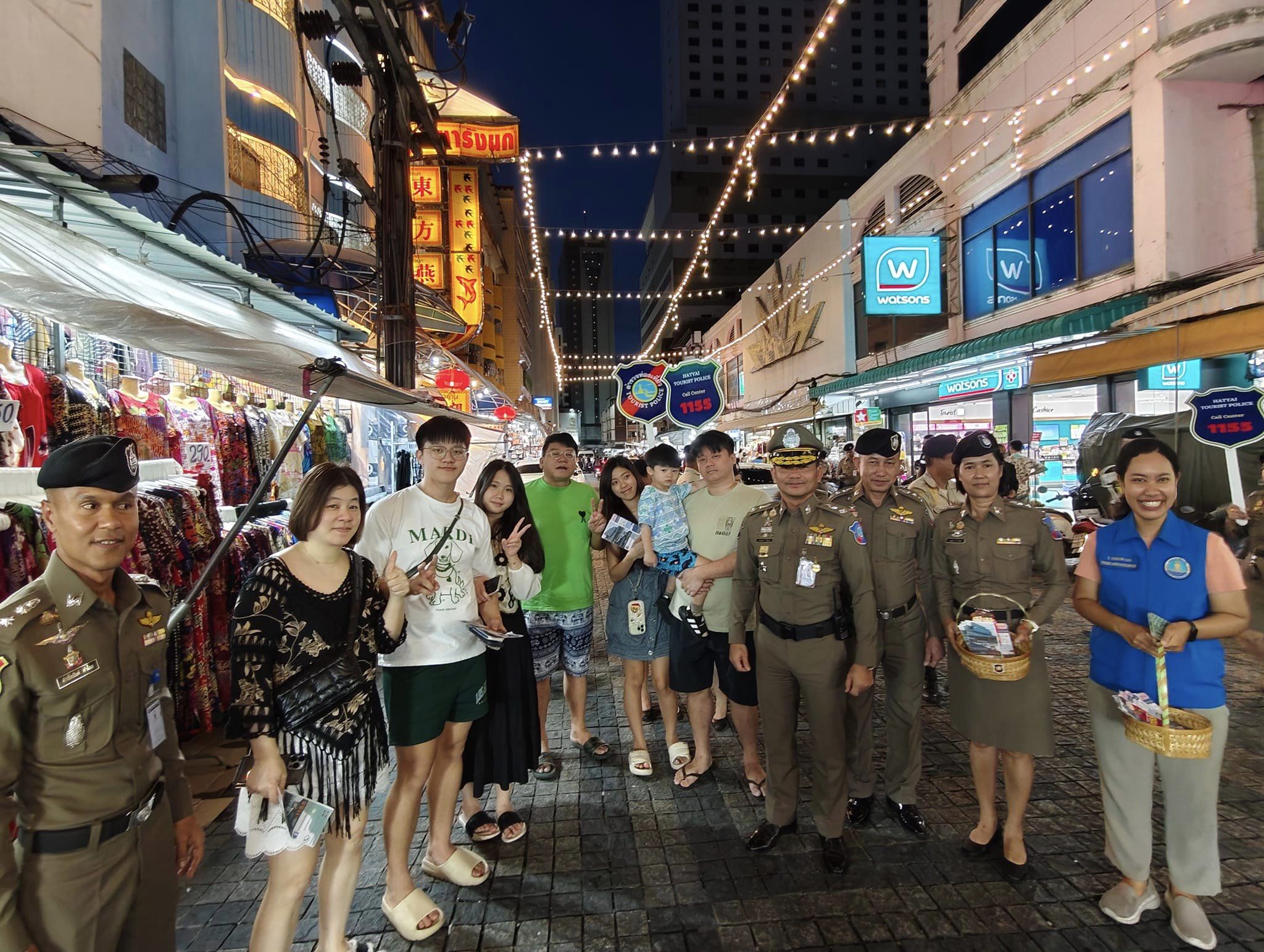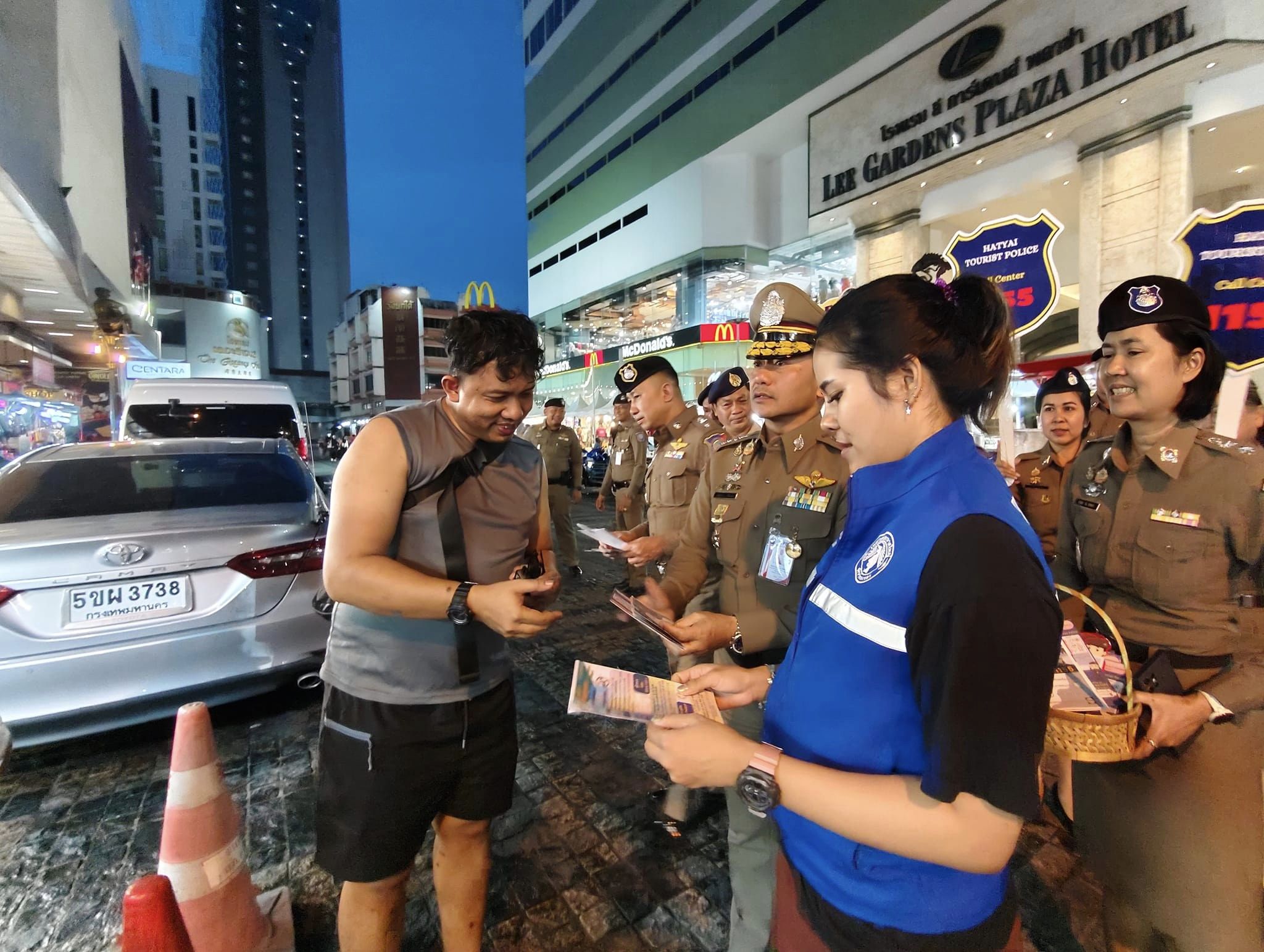 โอกาสนี้ รอง ผบช.ทท. และคณะ พร้อมข้าราชการตำรวจ เจ้าหน้าที่ช่วยเหลือตำรวจท่องเที่ยว เจ้าหน้าที่ TAC อส.รักษาดินแดน จนท.เทศบาลนครหาดใหญ่ ร่วมเดินเท้าประชาสัมพันธ์หน่วยงานตำรวจท่องเที่ยวแจกแผ่นพับ พบปะพูดคุยกับนักท่องเที่ยว เพื่อสร้างความเชื่อมั่นและมั่นใจในความปลอดภัยเมื่อเข้ามาท่องเที่ยวในประเทศไทย