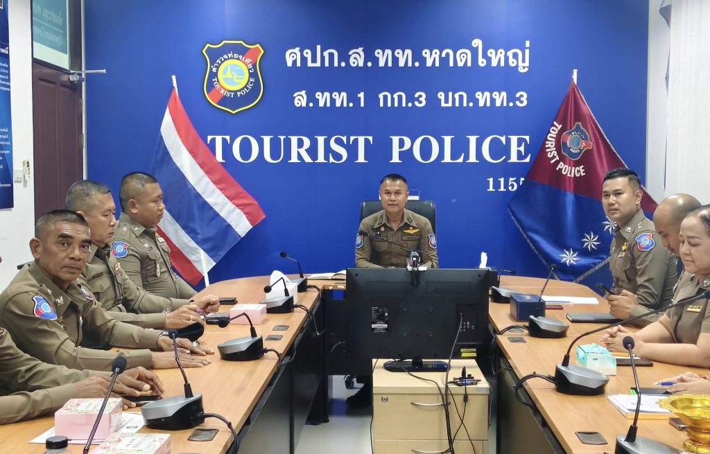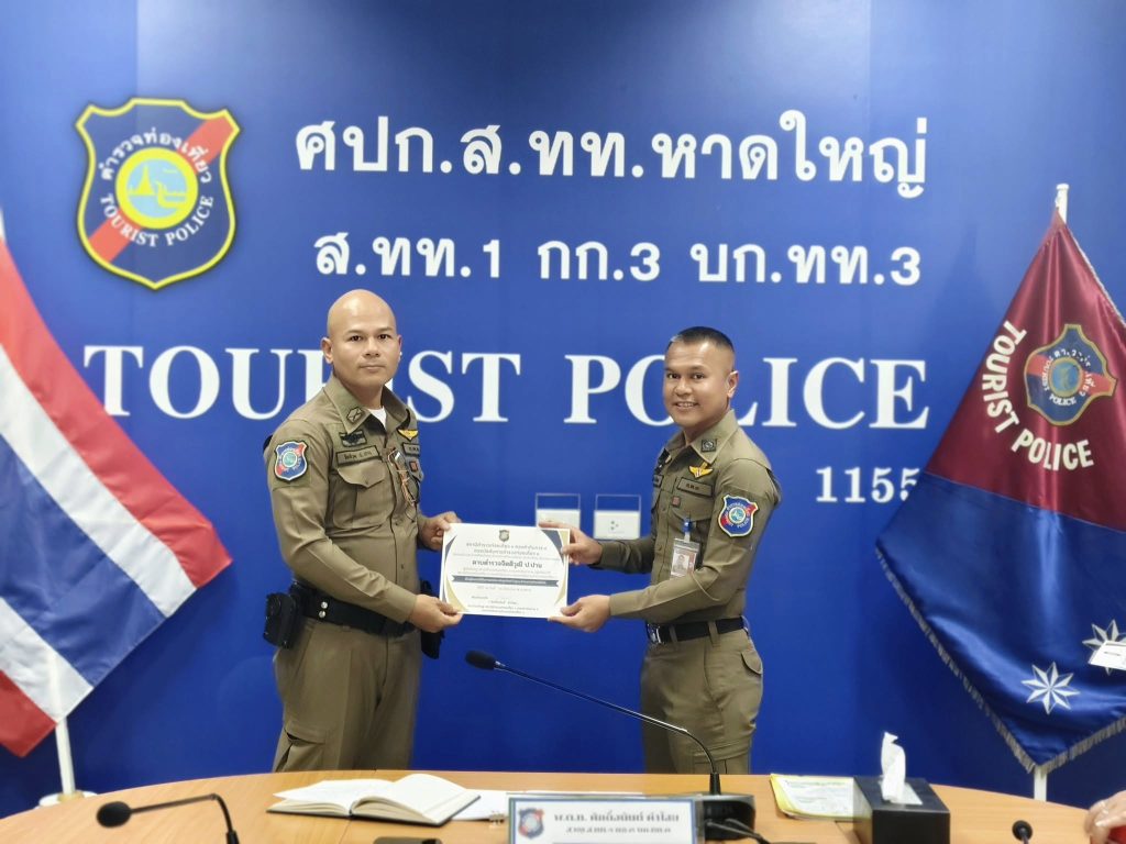 พ.ต.ท. ศักดิ์อนันต์ คำไสย สารวัตรใหญ่สถานีตำรวจท่องเที่ยวหาดใหญ่ เป็นประธานการประชุมข้าราชการตำรวจประจำเดือน มิถุนายน 2568 เพื่อมอบนโยบายของกองบัญชาการตำรวจท่องเที่ยว และผู้บังคับบัญชา โอกาสนี้ประธานได้มอบเข็มเครื่องราชแก่ข้าราชการตำรวจที่ไ้ด้รับพระราชทานเครื่องราชเหรียญจักมาลา และมอบใบประกาศเกียรติคุณแก่ข้าราชการตำรวจที่มีผลการปฏิบัติดีเด่นประจำเดือน ณ ห้อง ศปก.ส.ทท.หาดใหญ่ อ.หาดใหญ่ จ.สงขลา