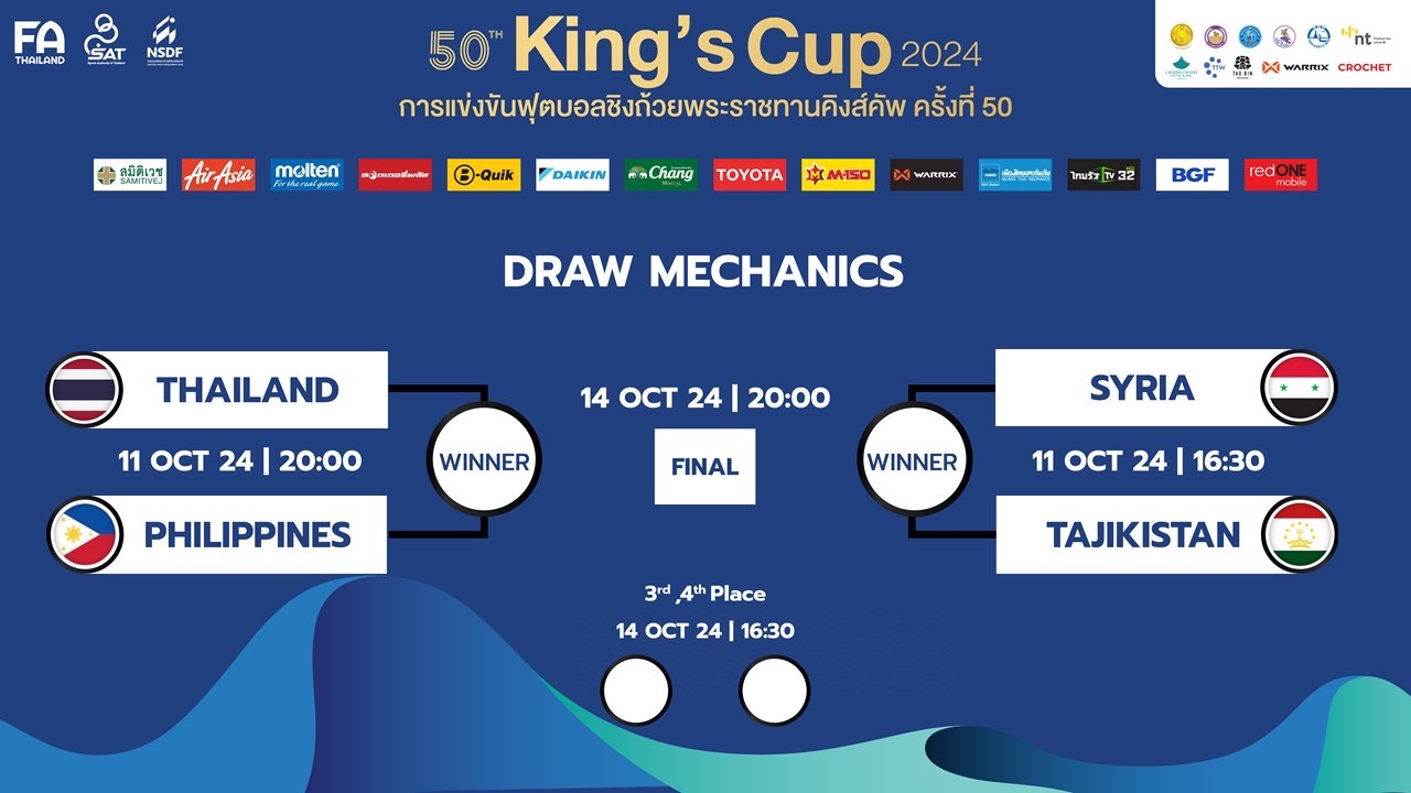 การแข่งขัน ฟุตบอลคิงส์คัพ ถ่ายทอดสด “ฟุตบอลทีมชาติไทย” ดูบอลสด ฟุตบอลชิงถ้วยพระราชทานคิงส์คัพ ครั้งที่ 50 (King’s Cup 2024) ระหว่างวันที่ 11-14 ตุลาคม 2567 ที่สนามกีฬาติณสูลานนท์ จังหวัดสงขลา เป็นเจ้าภาพ