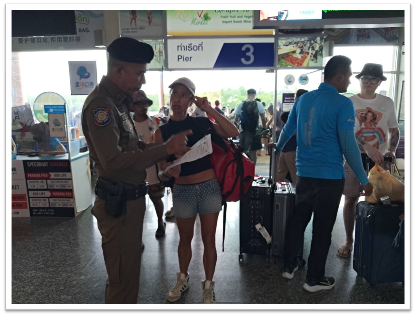 1 ก.พ. 2568 เวลา 11.30 น. ชป.สตูล (ปากบารา)ว.4 อำนวยความสะดวกนักท่องเที่ยวแนะนำช่วยเหลือและดูแลความรักษาความปลอดภัยรณรงค์ให้ผู้โดยสารสวมเสื้อชูชีพระหว่างการเดินทางโดยเรือ แก่นักท่องเที่ยวและประชาสัมพันธ์สายด่วน 1155 ณ. ท่าเรือปากบารา