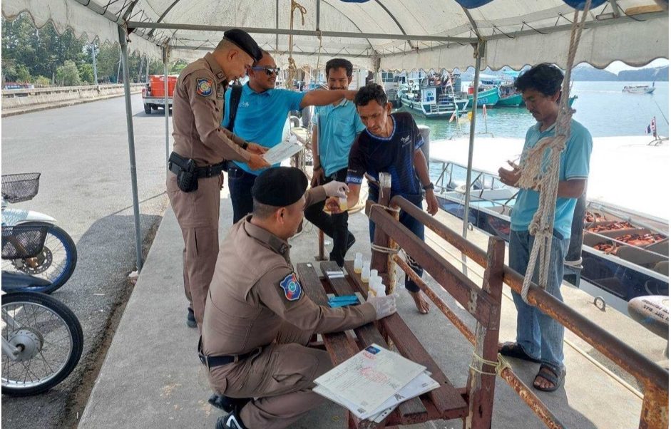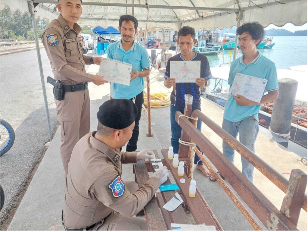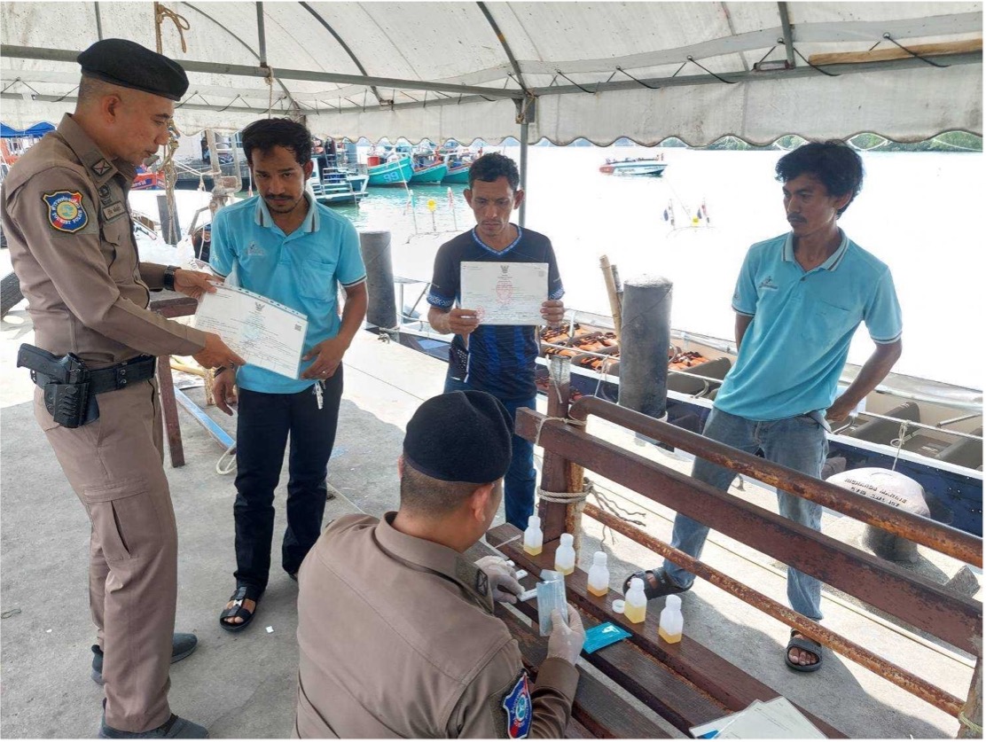 ชป.ปากบารา ว.4 สุ่มตรวจปัสสาวะนายท้ายเรือ ช่างเครื่องประจำเรือ เพื่อหาสารเสพติด ตามนโยบายของผู้บังคับบัญชา ณ ท่าเทียบเรือปากบารา ต.ปากน้ำ อ.ละงู จ.สตูล